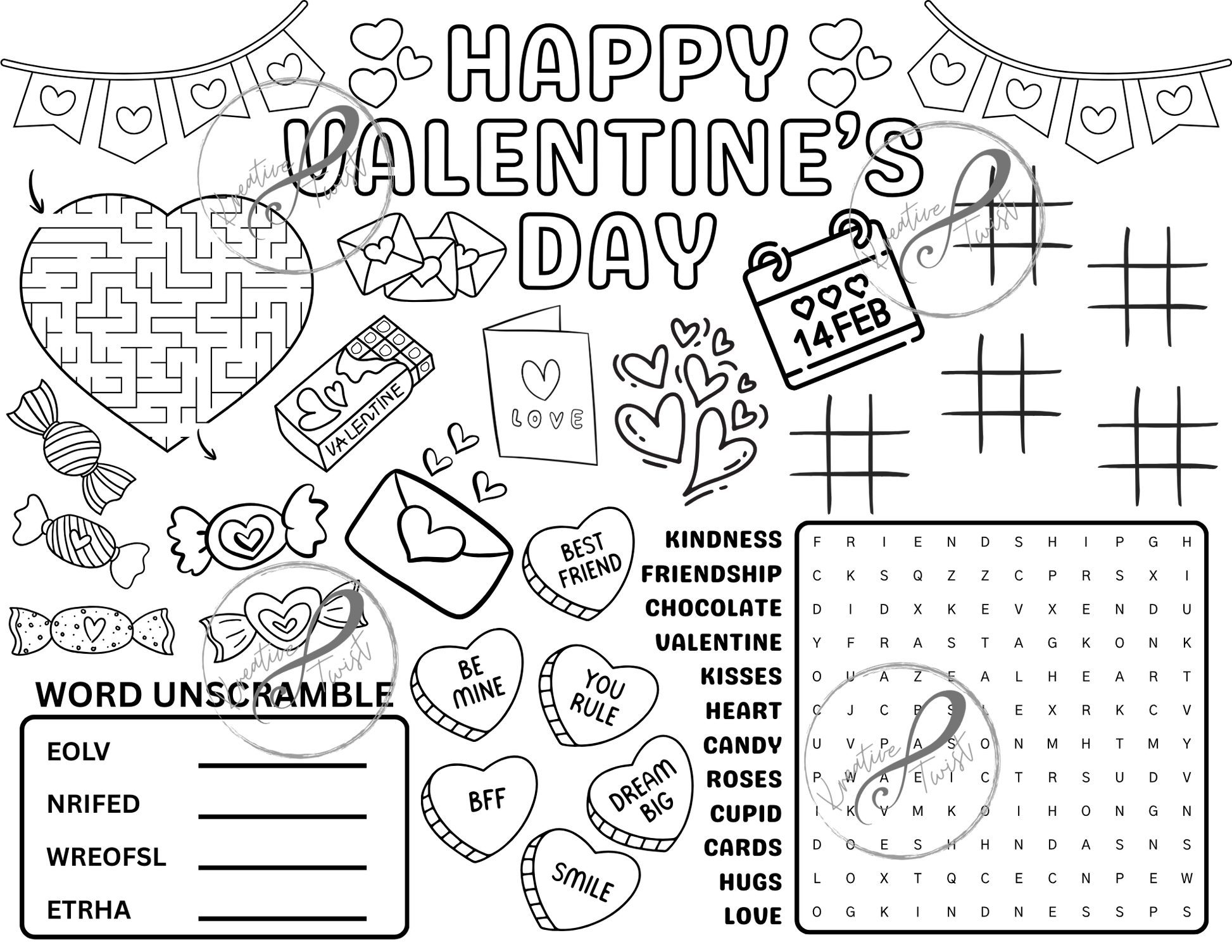 Valentine's Day Activity Coloring Page (Digital Downloads)